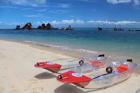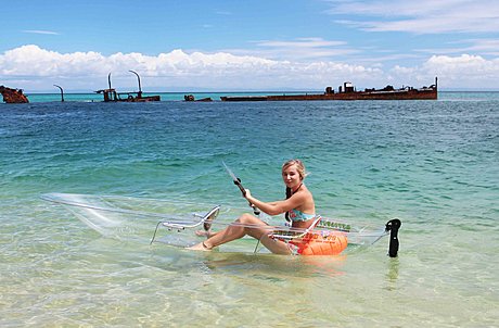 Get picked up and head to the port where we will embark on a beautiful cruise across the magnificent Moreton Bay on the MiCat Ferry. Upon arrival, relax and chill on the golden sandy beach with the wonderful view of Tangalooma Wrecks. Our tour guide will then take you on a snorkeling tour where you can spot turtles, dolphins, coral and thousands of beautiful reef fish! Back on the beach, you will be served with a wonderful fresh picnic lunch by our guide! After lunch, discover the hidden underwater wonders of the Tangalooma Wrecks with our fully guided transparent kayak and experience the awesome fish feeding frenzy, this is definitely the highlight of the tour!